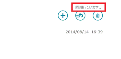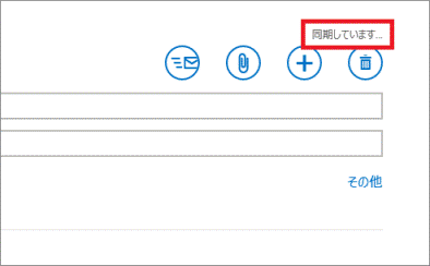 - メール画面の右上に「同期しています...」と表示されていることを確認します。