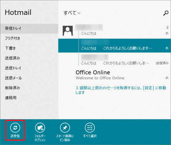 Windows ストア アプリのメールは、初期設定では新着メールを自動で受信します。