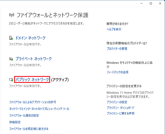[Windows 11] 有効になっているファイアウォールの確認方法を教えてください。