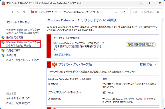 [Windows 11] Microsoft Defender ファイアウォールを有効または無効にする方法を教えてください。
