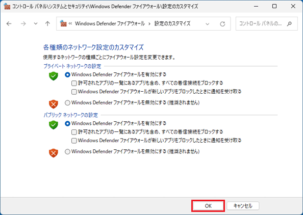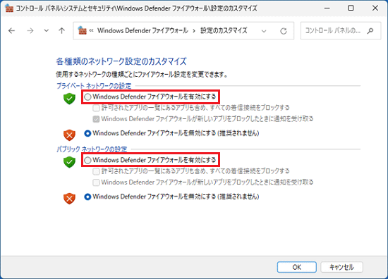- Windows Defender ファイアウォールの状態により操作が異なります。