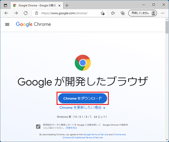 https://www.google.com/chrome/ - 「Chromeをダウンロード」ボタンをクリックします。