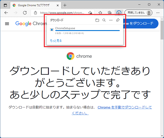 ダウンロードが開始されない場合は、「Chromeを手動でダウンロードしてください。」をクリックします。