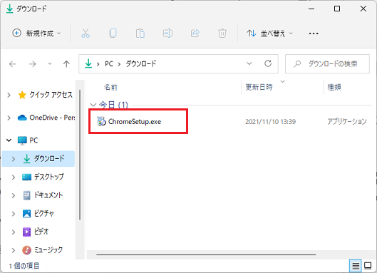 「ChromeSetup」(または「ChromeSetup.exe」)をダブルクリックします。