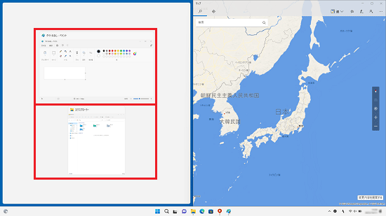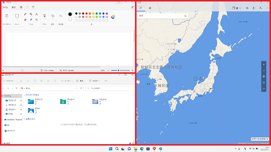 スナップレイアウトを使って、画面を分割する方法は、次のとおりです。