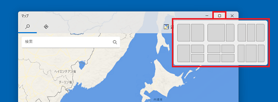 - アプリの最大化ボタンにマウスポインターを合わせると、スナップレイアウトが表示されます。