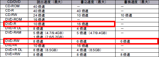 高速記録対応のDVD-R/RWに記載されている書込速度が、DVDドライブの最大書込速度を超えている場合は使用できません。