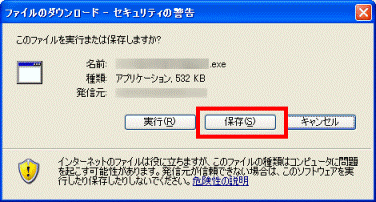 - 「ファイルのダウンロード - セキュリティの警告」が表示されます。
