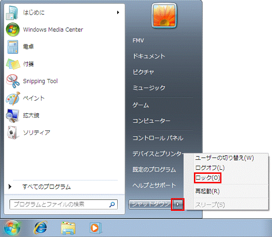 パソコンをロックすると、ロックを解除するまでパソコンの操作ができないようにすることができます。