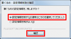 表示されたときは、「設定情報を残す(通常はこちらを選択してください。)」をクリックし、「確認」ボタンをクリックします。
