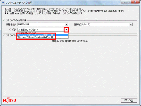 「OS」欄にある「▼」ボタンをクリックし、表示されるメニューからお使いのOSをクリックします。