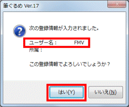 「ユーザー名」を確認し、「はい」ボタンをクリックします。