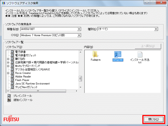 - 「閉じる」ボタンをクリックし、ソフトウェアディスク検索を閉じます。