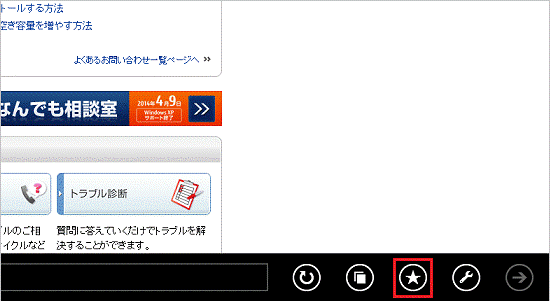 スタート画面から起動したInternet Explorerで、お気に入りを表示する方法は、次のとおりです。