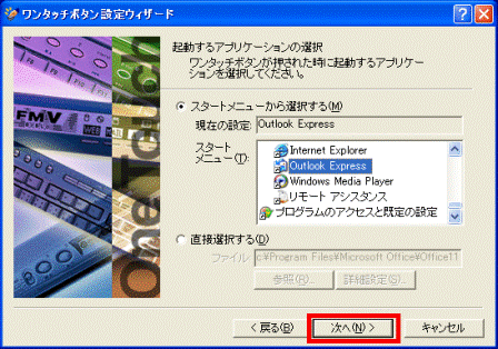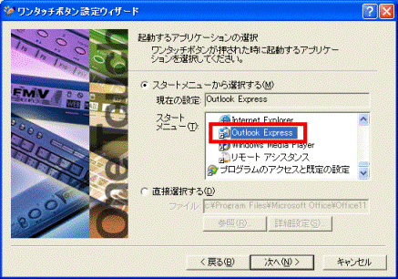 ワンタッチボタンのメールの設定について教えてください。(新しいウィンドウで表示) - 1999年夏モデル〜2000年春モデルは、ワンタッチボタンを押したときに起動するメールソフトをFM便利ツールで設定します。