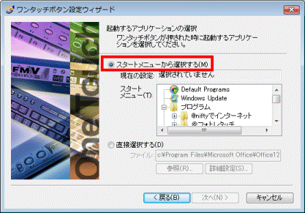 - 「スタート」ボタン→「すべてのプログラム」→「ワンタッチボタン設定」(または「ワンタッチボタン」)→「1. ワンタッチボタンの設定」の順にクリックします。