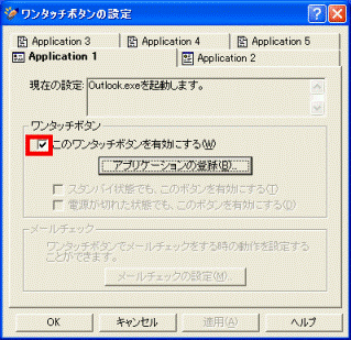 チェックがない場合は、「このワンタッチボタンを有効にする」をクリックし、チェックを付けます。