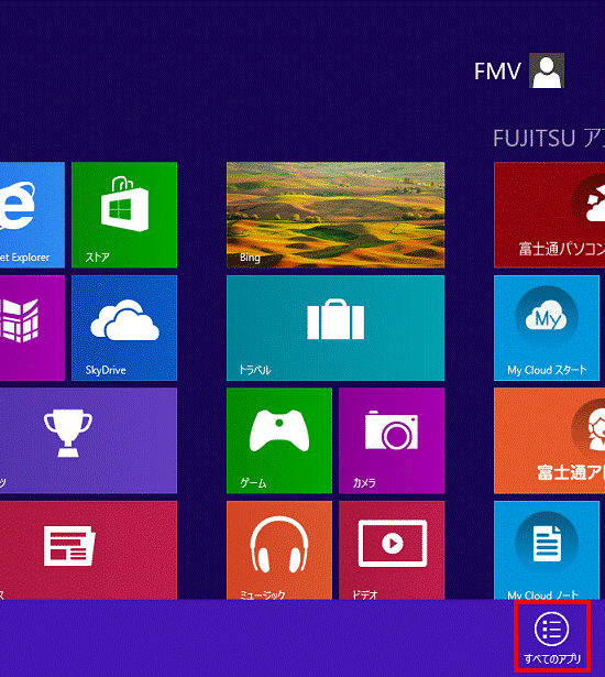- スタート画面の何もないところ右クリックし、表示されるメニューから「すべてのアプリ」をクリックします。