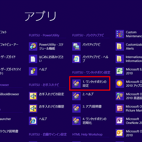 「FUJITSU - ワンタッチボタン設定」にある「1. ワンタッチボタンの設定」をクリックします。