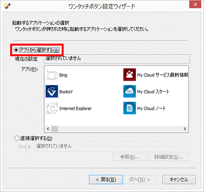 「直接選択する」をクリックして「参照」ボタンをクリックすると、起動するアプリケーションの実行ファイルを直接指定できます。 - 一覧から、起動させたいメールソフトをクリックします。