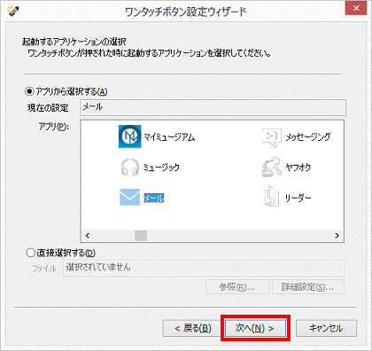 (「メール」をクリックした例) - 「次へ」ボタンをクリックします。