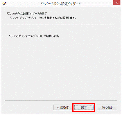 - 「ワンタッチボタン設定ウィザードの完了」と表示されます。