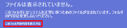 「ファイルは表示されていません。」と表示された場合は、「このフォルダの内容を表示する」をクリックします。