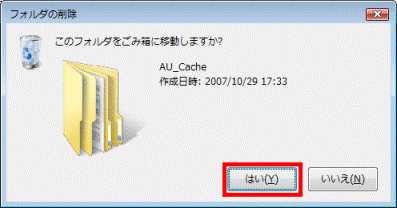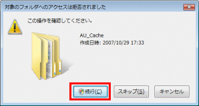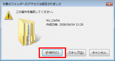 「AU_Cache」フォルダは、アップデートを実行すると再作成されます。 - 「対象フォルダへのアクセスは拒否されました」が表示されます。