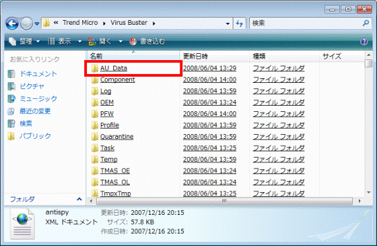 「×」ボタンをクリックし、「AU_Date」フォルダを閉じます。