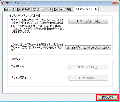 - 「閉じる」ボタンをクリックし、「サポートツール」を終了します。