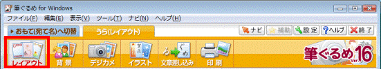 「おもて(宛て名)」タブが選択されているときは、「うら(レイアウト)へ切替」タブをクリックします。 - 「レイアウト」ボタンをクリックします。