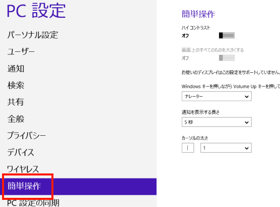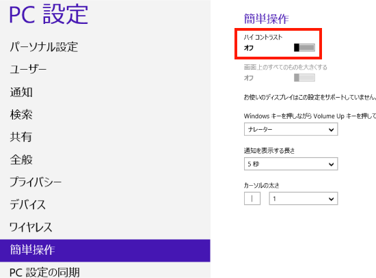 [Windows 8.1/8] ハイコントラストの設定をオンにする / オフにする方法を教えてください。