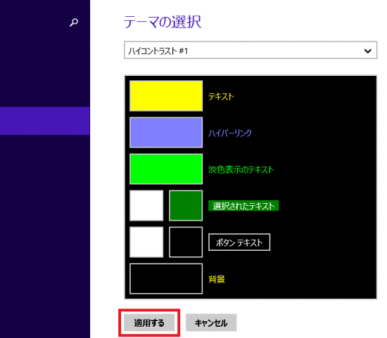 「ハイコントラストテーマ」から、お好みのテーマをクリックします。 - ハイコントラストをオフにする場合