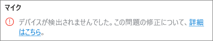 - 「マイク」に「デバイスが検出されませんでした」と表示された場合