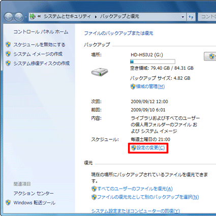 [Windows 7] バックアップが自動的に実行される曜日や時刻を変更する方法を教えてください。