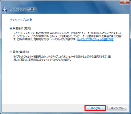 - 「バックアップの対象」と表示されます。