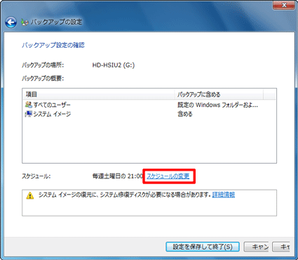 このスケジュールを変更したい場合は、次の手順で、バックアップの頻度や曜日、時刻を変更します。