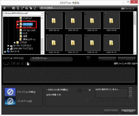 (「マイピクチャ」フォルダーに写真が保存されている例) - 追加する写真をクリックします。