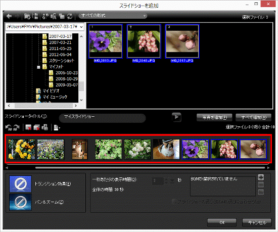 - 手順2.〜手順5.を繰り返し、スライドショーに使用する写真をすべて追加します。