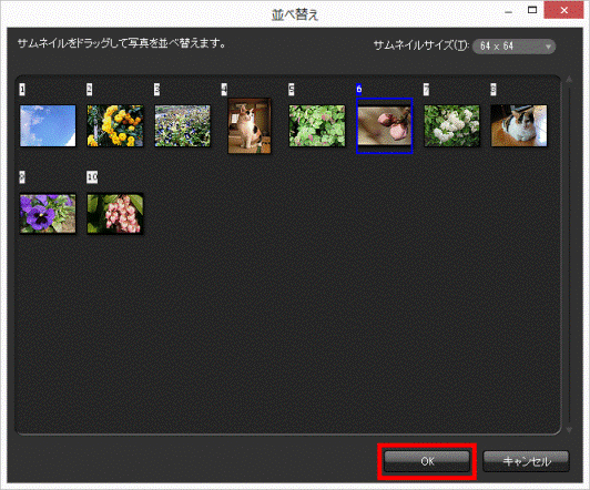 - 写真が並び替えられたことを確認し、「OK」ボタンをクリックします。