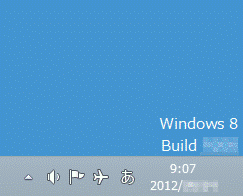 デスクトップ画面の右下に、Windows 名+ビルド番号が表示されます。