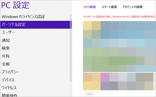 (Windows 8で表示される画面) - 画像や表示するアプリなどのロック画面に関する設定