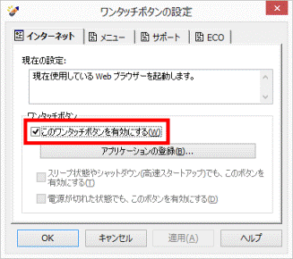 (画像は一例です) - 「このワンタッチボタンを有効にする」にチェックが付いているかどうかを確認します。