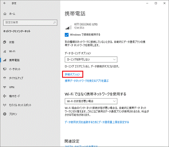 次のマイクロソフト社のホームページで、携帯データネットワークに接続する場合の設定方法について紹介しています。