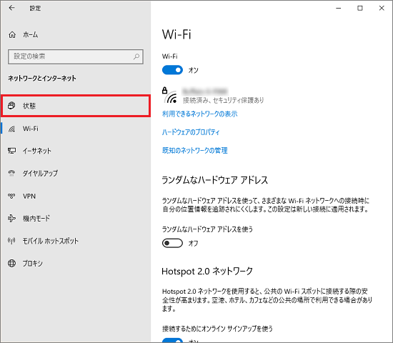 - 「Wi-Fi」または「イーサーネット」を選択した場合