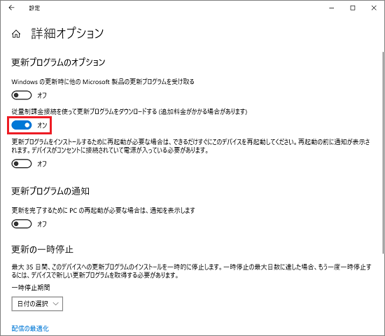 4番目の確認項目従量制課金接続時でも更新プログラムをダウンロードする方法
