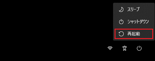 - メニューが表示されたら、「再起動」に枠が付くまで【↓】キーを何度か押して、【Enter】キーを押します。