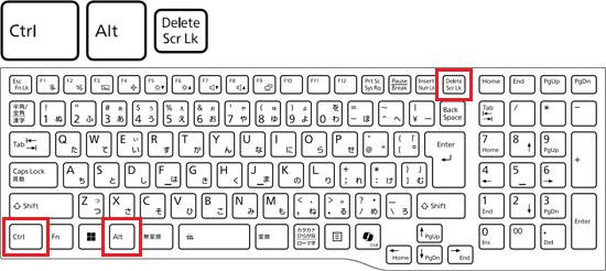 - 【Ctrl】キーと【Alt】キーを押しながら、【Delete】キーを押します。