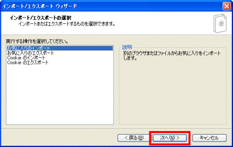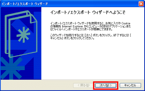 「お気に入りのインポート」をクリックします。 - 「次へ」ボタンをクリックします。