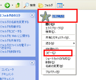 - バックアップした「お気に入り」フォルダ(または「Favorites」フォルダ)を右クリックし、表示されるメニューから、「コピー」をクリックします。